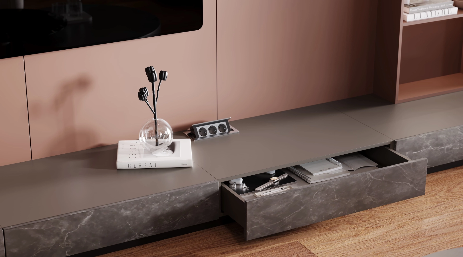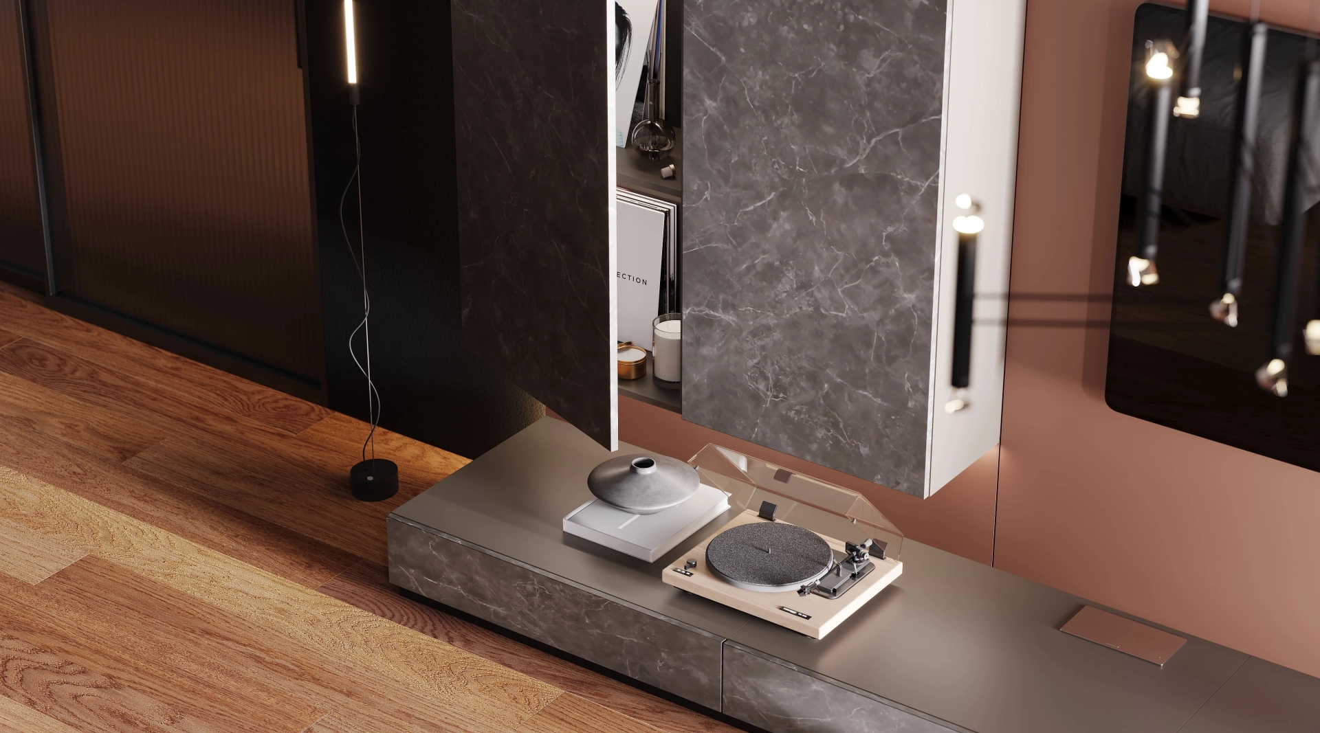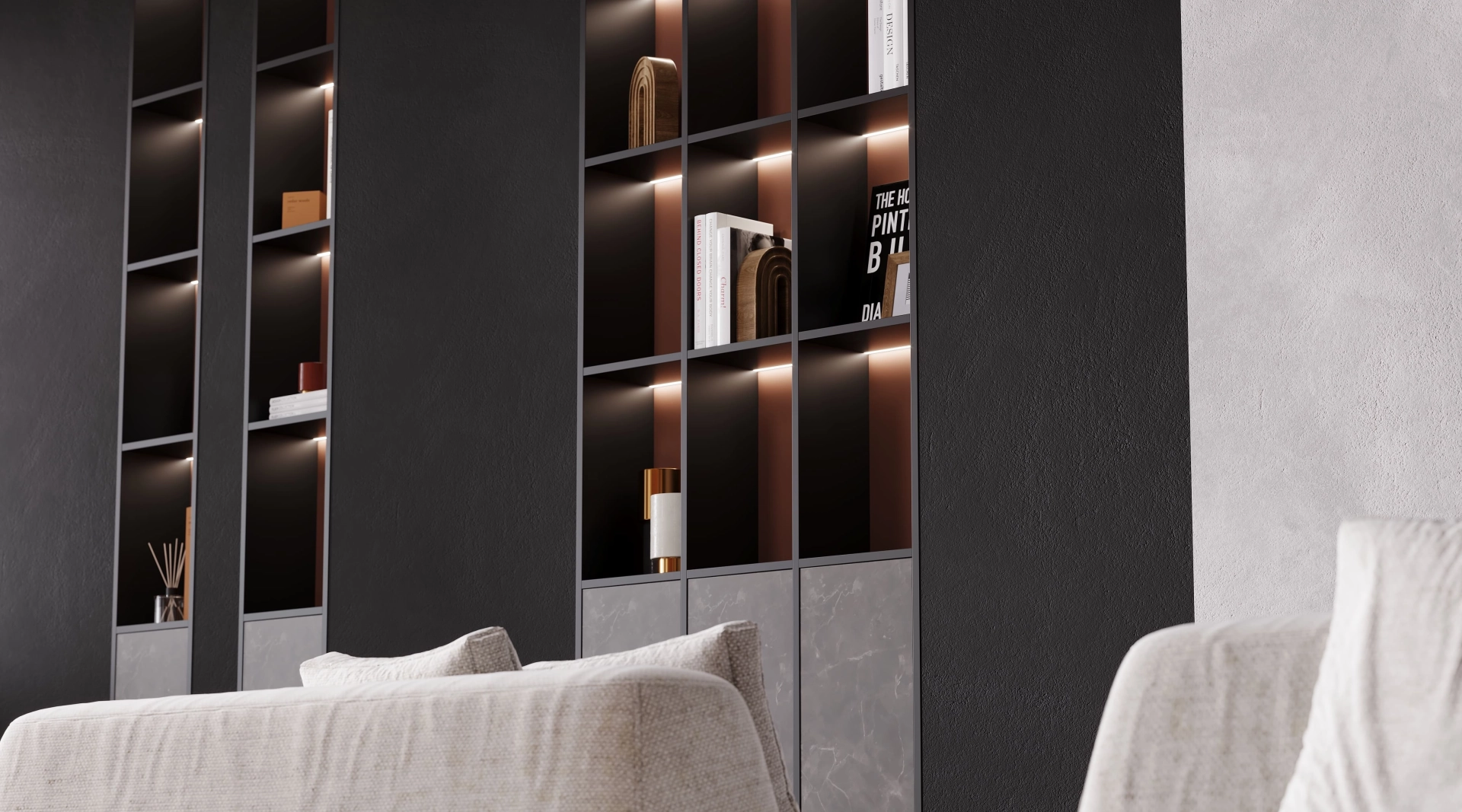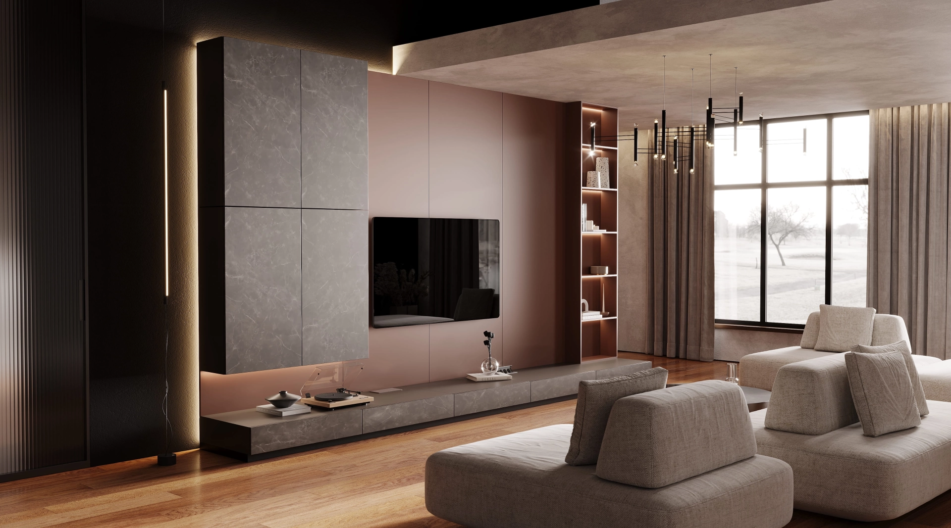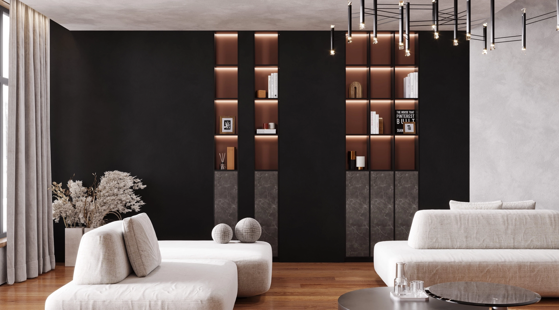 Гостиная, вдохновленная пульсирующим ритмом большого города, где современный дизайн встречается с индустриальной эстетикой. Инновации здесь не кричат, а шепчут: матовые бетонные панели соседствуют с интеллектуальным освещением, а терракотовые акценты привносят человеческое тепло в высокотехнологичную среду. Отдыхайте, размышляйте и вдохновляйтесь в пространстве, где будущее стало реальностью.