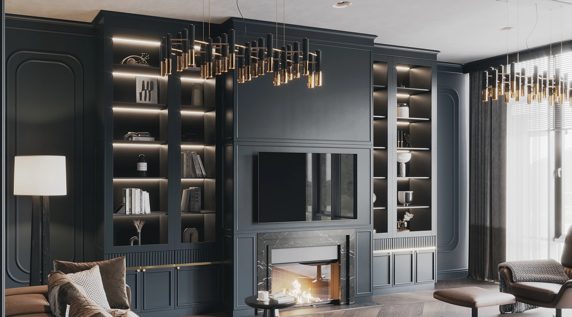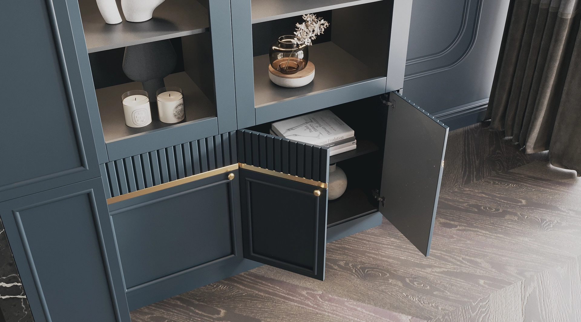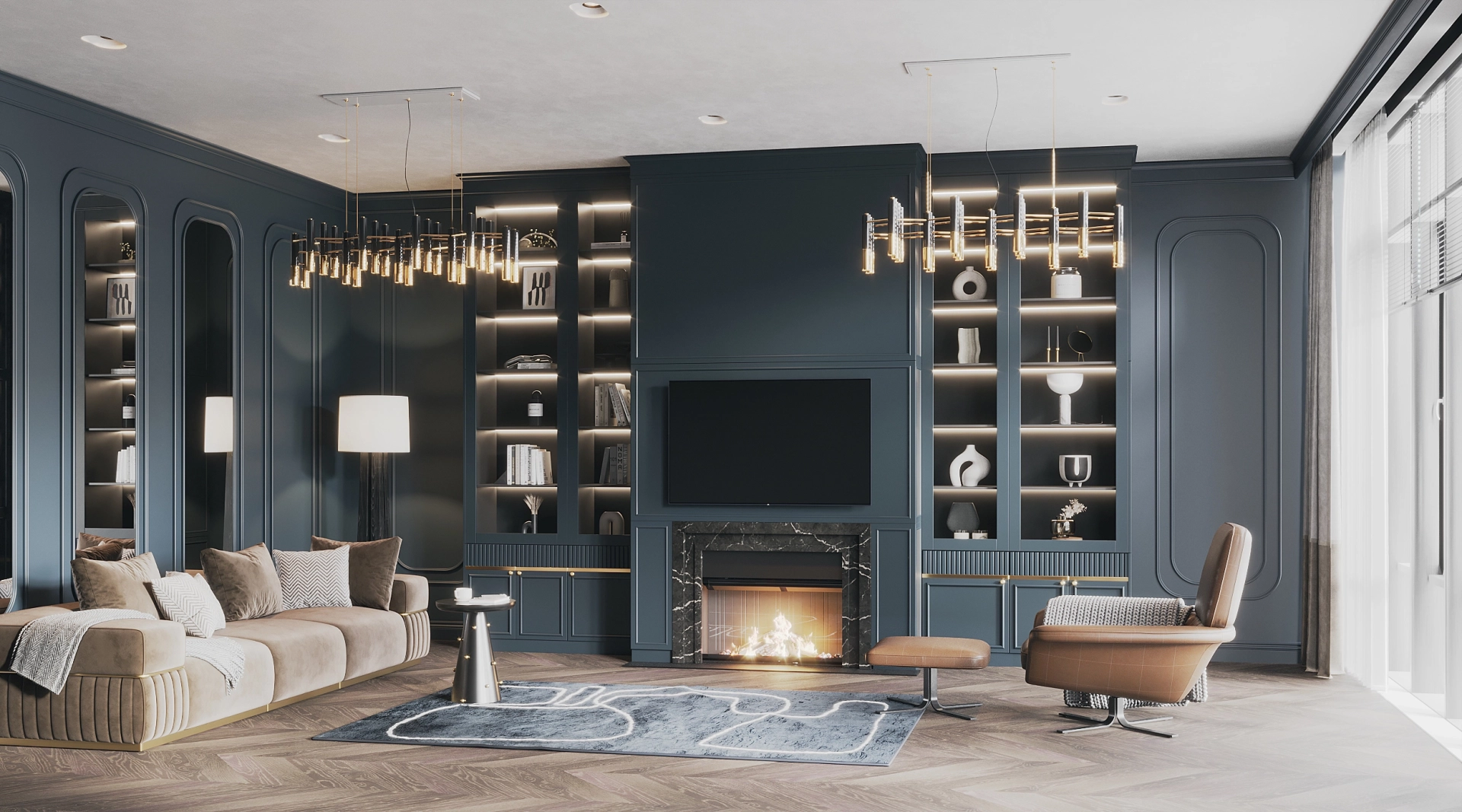 Насыщенный синий цвет наполняет гостиную ощущением благородной изысканности. Дизайн строится на гармоничном сочетании: классические приёмы декорирования обогащены современными технологическими решениями, а монументальность форм уравновешена лёгкостью материалов. Интерьер для тех, кто ценит непреходящие эстетические идеалы, оставаясь приверженцем актуального образа жизни.