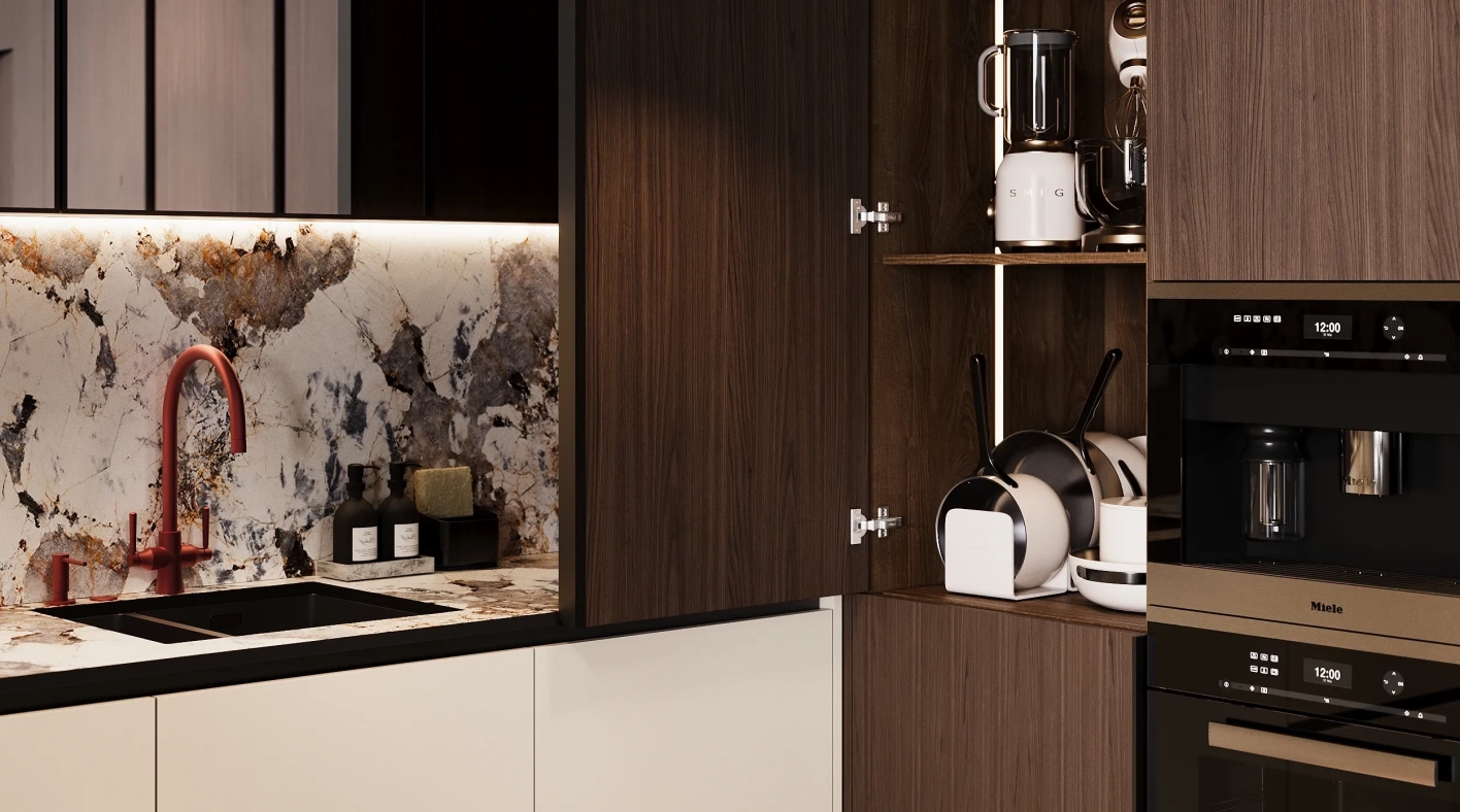 Кухня Redmony - воплощение современного дизайнерского мышления, где каждая деталь подчинена гармонии трех ключевых элементов. Зеркальные фасады, отражая пространство, создают игру света и перспективы, наполняя интерьер воздушностью. Яркие красные акценты, словно капли страсти, расставляют смелые акценты, притягивая взгляд и задавая ритм всему пространству. Эта кухня для тех, кто ценит эксклюзивность и неповторимую эстетику.