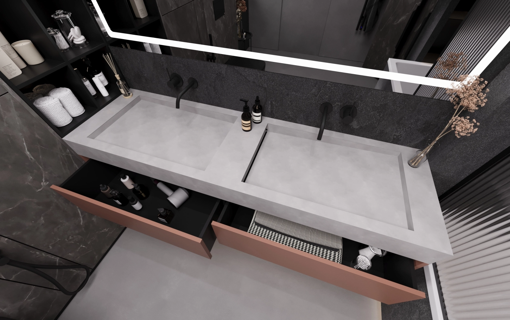 Брутальный союз бетона и терракоты — гимн урбанистическому стилю. Лаконичные формы, чёткие линии, сдержанная палитра - задают ритм мегаполиса, подчёркивают честность материалов и чистоту дизайна. Здесь нет излишеств — только выразительные текстуры, смелые контрасты и ощущение свободной, динамичной жизни в городе.